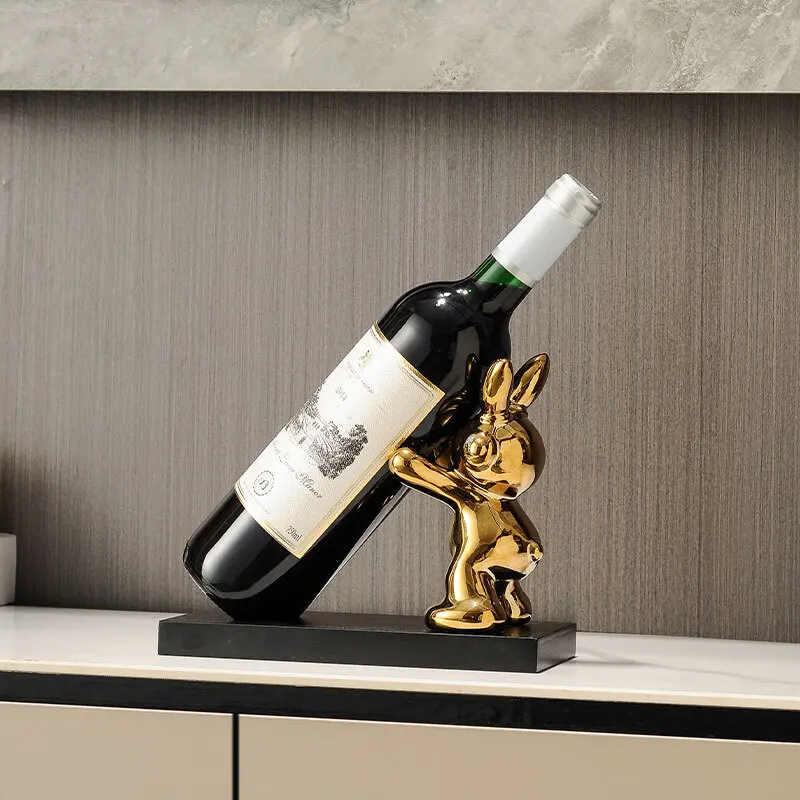 Decorations, creative ornaments, modern wine cabinets, home living room, light luxury, gold push wine rabbit wine rack.